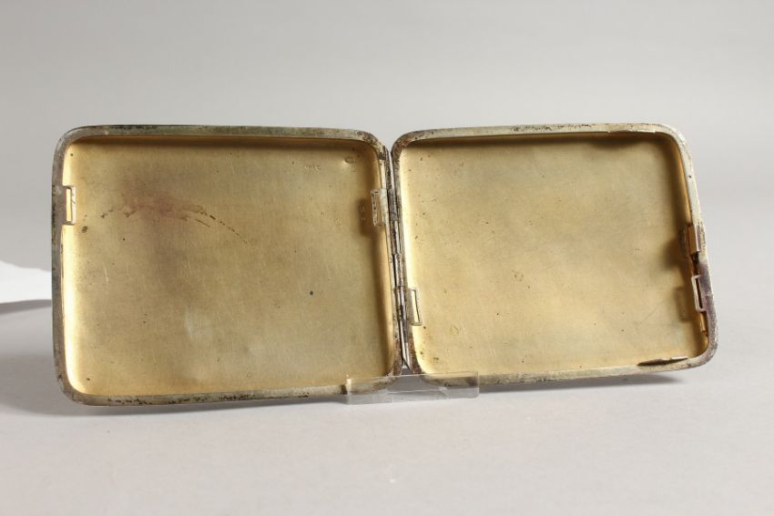 A GOOD RUSSIAN SILVER AND NIELLO CIGARETTE CASE, the top with an enamel of a half-length nude.