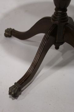 A GEORGIAN STYLE MAHOGANY CIRCULAR DRUM TABLE with leather top, on four legs.
