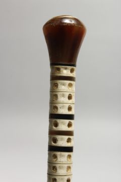 A WHALEBONE VERTEBRAE WALKING STICK with bone handle.