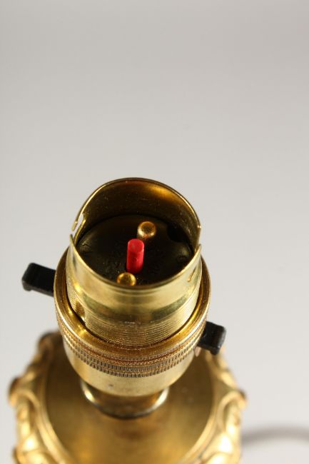 A VERY GOOD PAIR OF EMPIRE ORMOLU AND CUT GLASS LAMPS, the classical bases with swans.