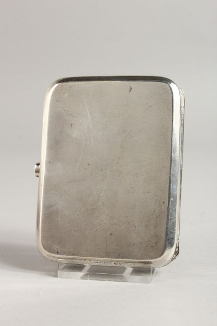 A GEORGE V PLAIN SILVER CIGARETTE CASE, the top with an enamel of a full-length nude and Arab.