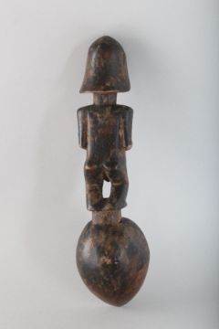 A CARVED WOOD TRIBAL SPOON.