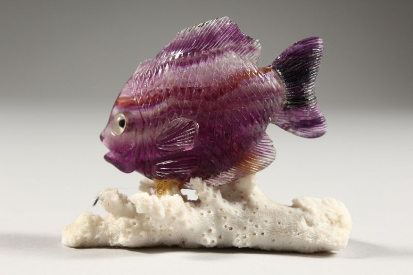 AN AMETHYST FISH ON WHITE CORAL.