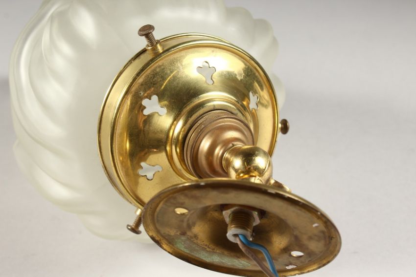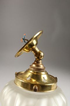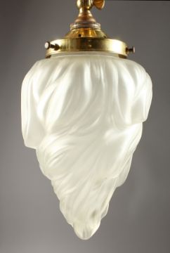 A FROSTED GLASS HANGING LIGHT FITTING.