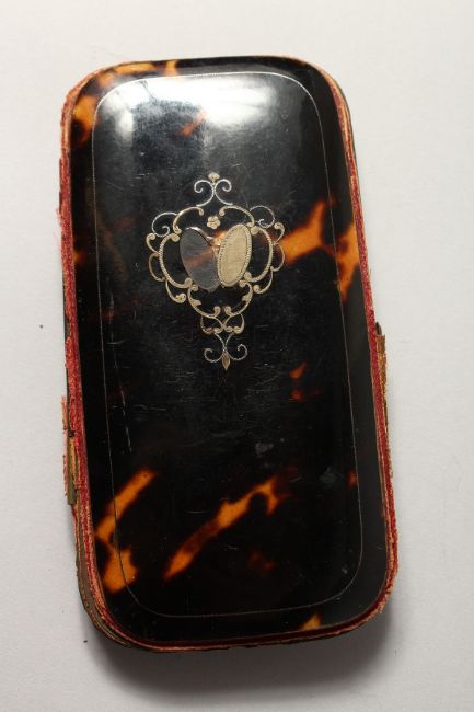 A VICTORIAN INLAID TORTOISESHELL SPECTACLE CASE.