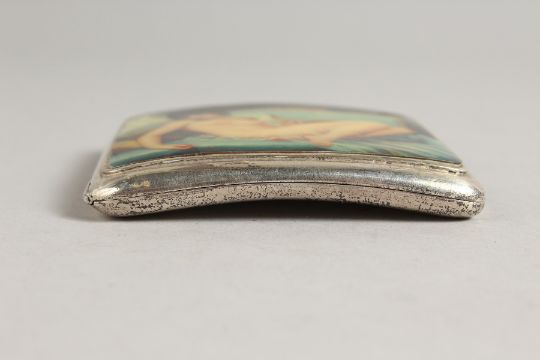 A GEORGE V PLAIN SILVER CIGARETTE CASE, the top with an oval enamel of a seated nude.