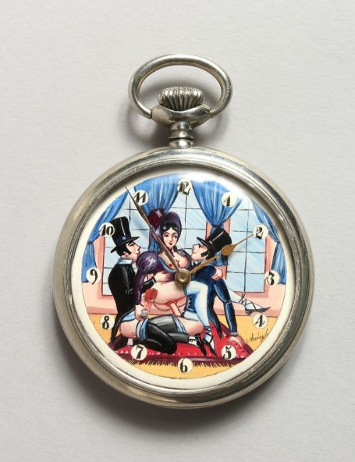 A DOXA CHROME EROTIC FACED POCKET WATCH.