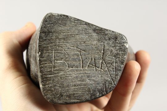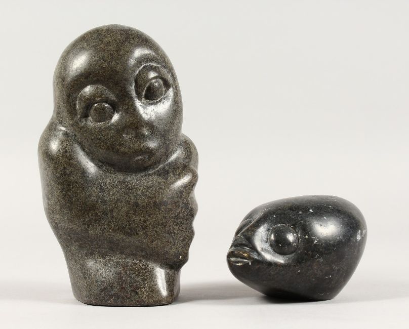 TWO AFRICAN CARVINGS, head signed R. MTEKI, and A FIGURE, signed B. TAKA.