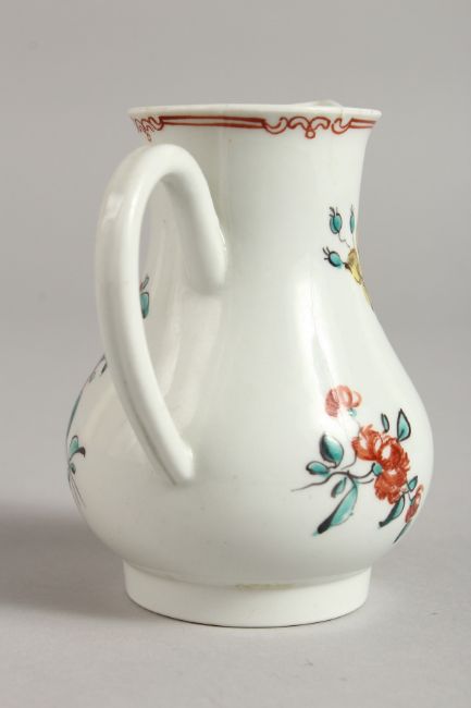AN 18TH CENTURY LIVERPOOL SPARROW BEAK JUG painted with coloured flowers.