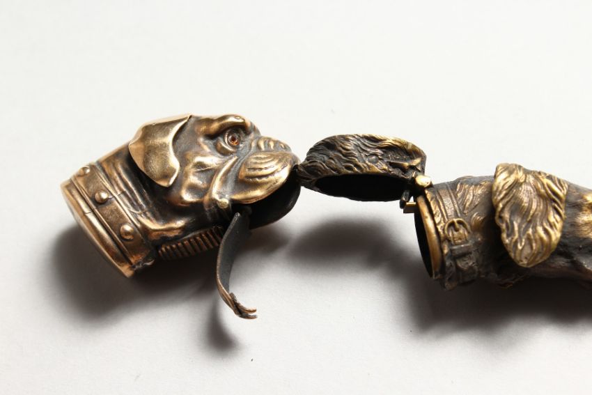 TWO BRASS DOG'S HEAD VESTAS.