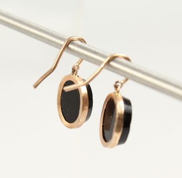 A SMALL PAIR OF PIETRA DURA EARRINGS.