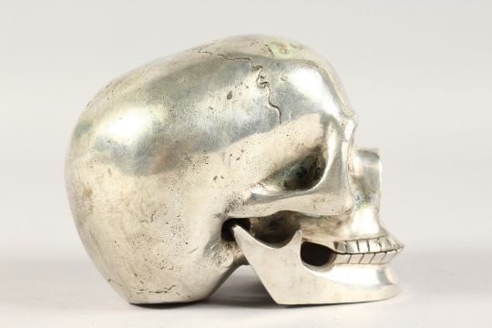 A SILVER PLATE SKULL.