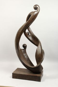 A GOOD ABSTRACT BRONZE FIGURE GROUP, on a rectangular base.