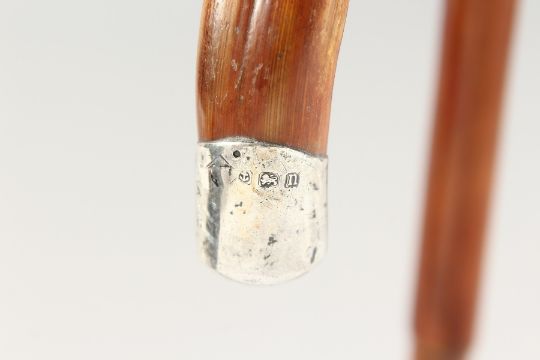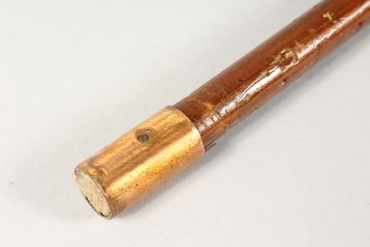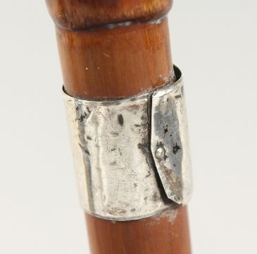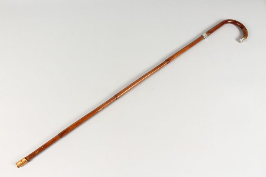 A WALKING STICK with silver tip and collar.