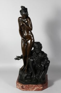 A SUPERB LARGE BRONZE, AN ARAB AND NUDE.