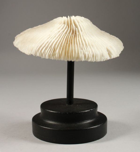 A WHITE CORAL ON A STAND.