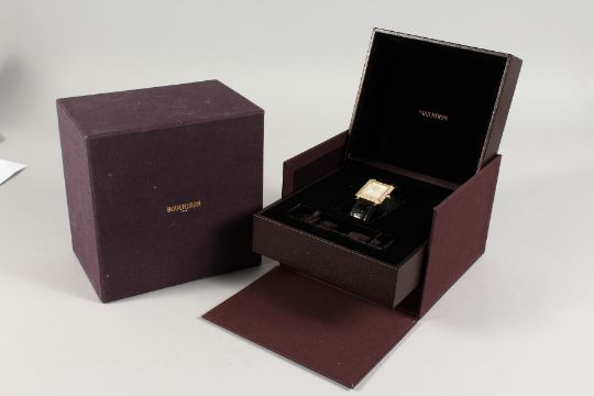 A VERY GOOD BOUCHERON 18CT GOLD DIAMOND SET WRISTWATCH with leather strap, No. AJ4103, in case.