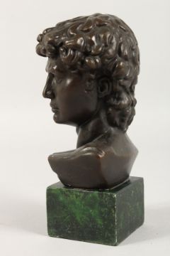 A BRONZE ROMAN BUST on a marble base.