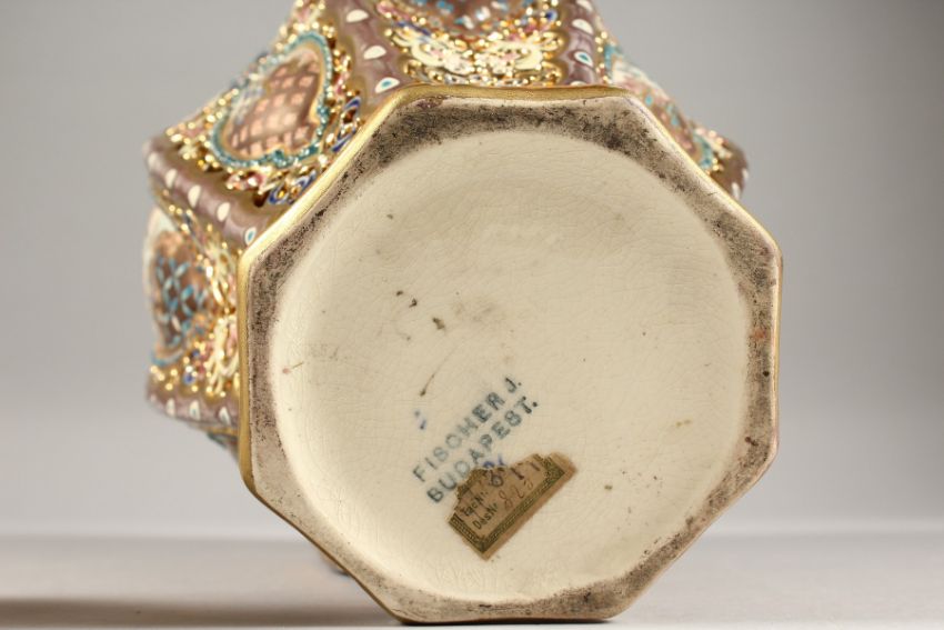 A GOOD ZSOLNAY PIERCED PORCELAIN VASE AND COVER of octagonal form.