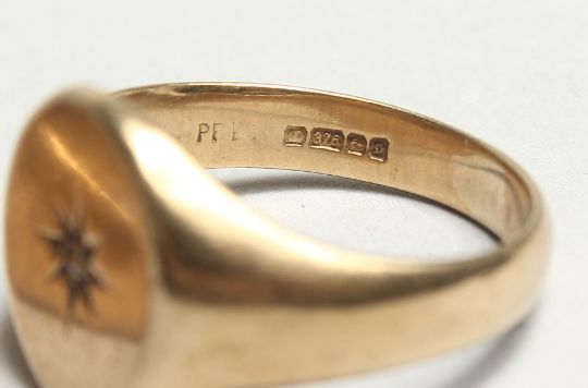 A GENTS 9CT GOLD SIGNET RING and ANOTHER WITH STONES.