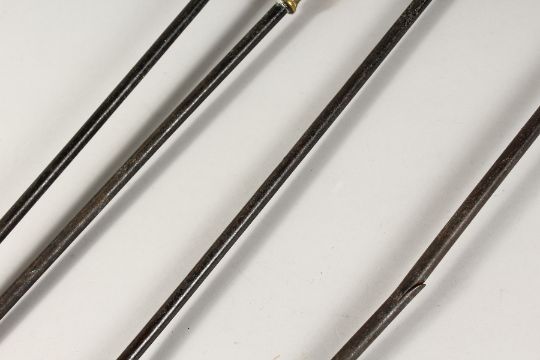A SET OF THREE VICTORIAN BRASS AND STEEL FIRE IRONS.
