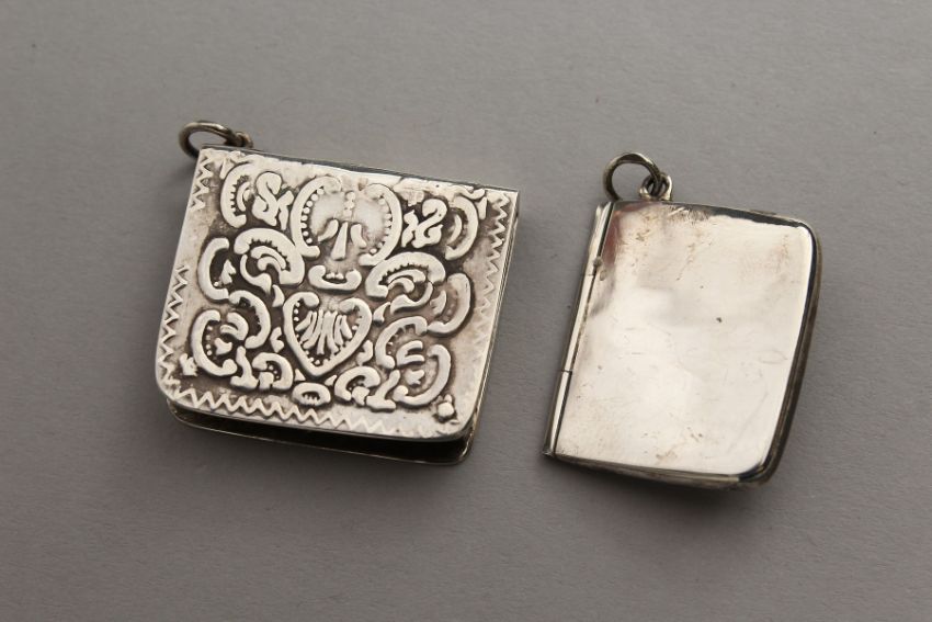 TWO SILVER STAMP BOXES.