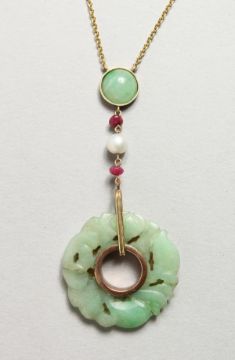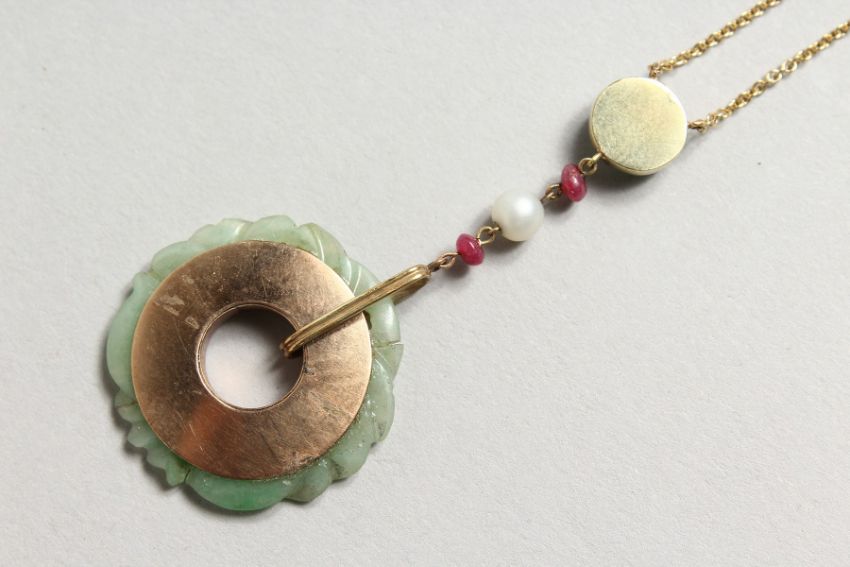 A JADE AND GOLD PENDANT.