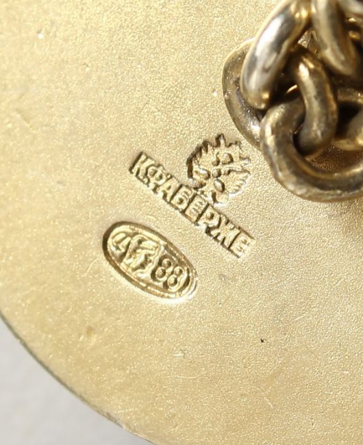 A PAIR OF RUSSIAN SILVER GILT IMPERIAL EAGLE CUFFLINKS with Faberge mark.
