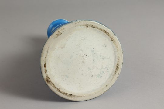 A QAJAR BLUE GROUND BELL SHAPED VASE painted with flowers and oval portraits.