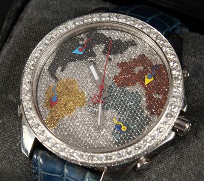 A JACOB & CO FIVE TIME ZONE WRISTWATCH with diamond and leather strap, in a Jacob case with spare strap.