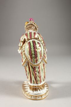 A GOOD RUSSIAN PORCELAIN EROTIC FIGURE OF A LADY, her foot on a stool, a flap on her rear which shows her bottom.