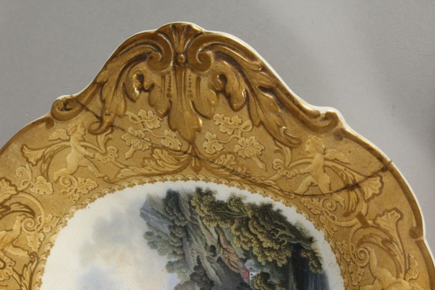 A LARGE PRATTWARE PART DINNER SERVICE, all with landscape views, comprising sixteen 9-inch plates and six comports.