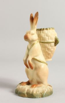 A RARE ROYAL WORCESTER FIGURE OF BR'ER RABBIT carrying a wicker basket on his back, date code 1916.