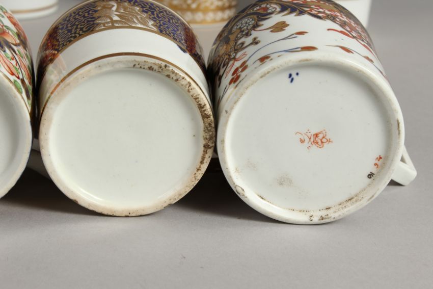 TWO DERBY IMARI STYLE COFFEE CANS, a Miles Mason can with gold and blue decoration and an English coffee can with floral and gilt decoration.