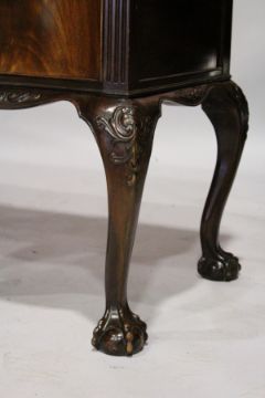 A GEORGIAN STYLE MAHOGANY SIDEBOARD, with two central drawers flanked by a cellarette drawer, on cabriole legs ending in claw and ball feet.