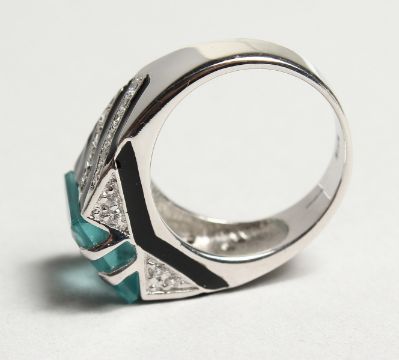 A SILVER ART DECO DESIGN RING.