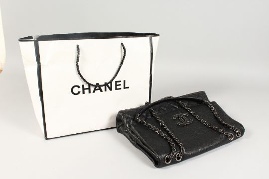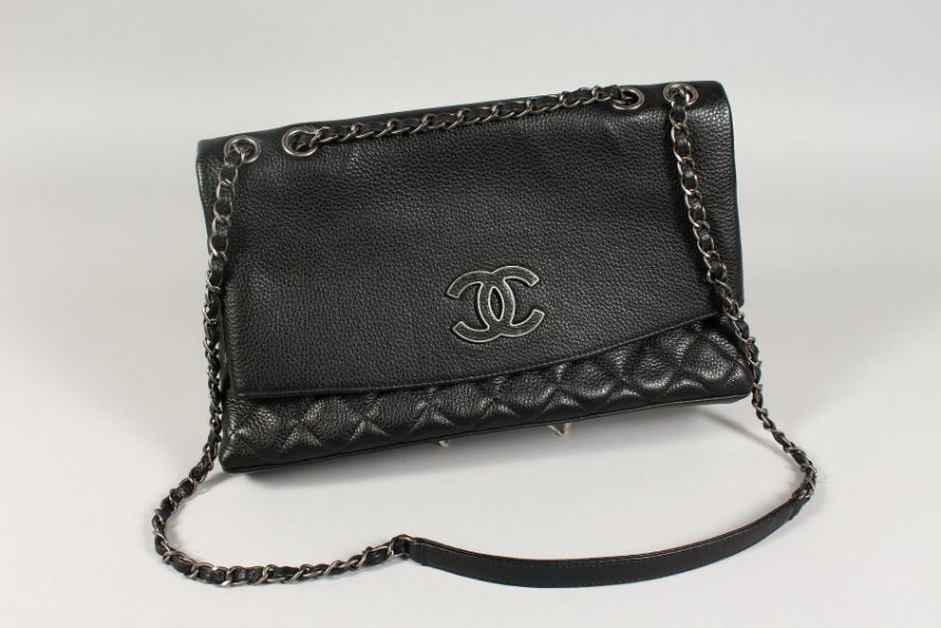 A CHANEL FOLD-UP QUILTED HANDBAG in a Chanel bag.