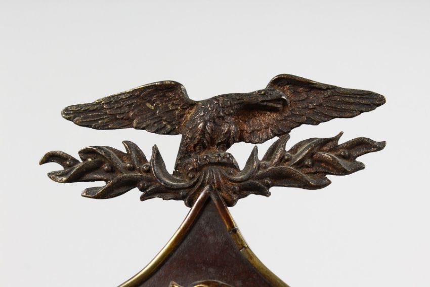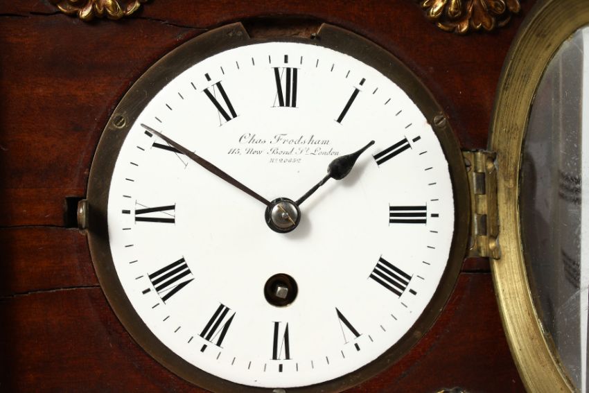 A CHARLES FRODSHAM OF LONDON, No. 20652, MANTLE CLOCK, in a mahogany case with brass motif and eagle, on claw feet.