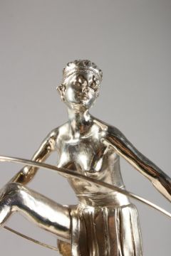 A CHROME PLATED BRONZE FIGURE OF AN ART NOUVEAU DANCER, on a marble base.