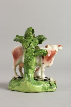 AN 18TH CENTURY DERBY COW AND CALF GROUP.