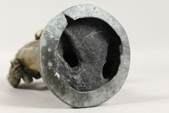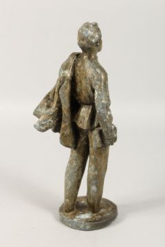 A RUSSIAN METAL FIGURE OF A YOUNG MAN carrying a book and cloak.