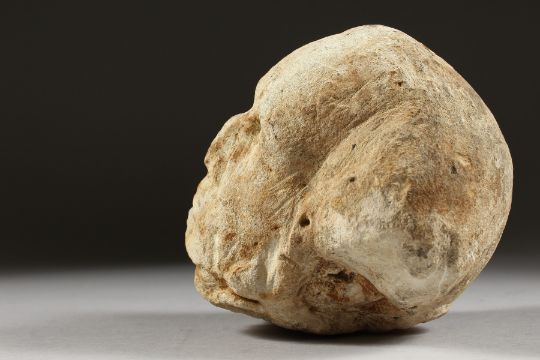 AN EARLY, POSSIBLY 16TH CENTURY, CARVED STONE HEAD.