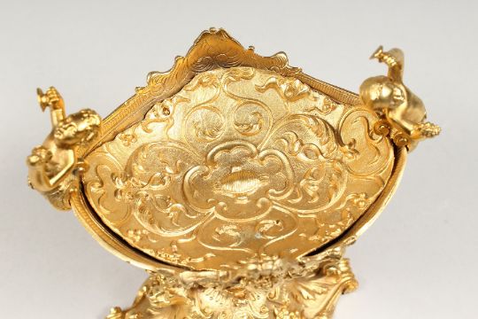 A GOOD GILT BRONZE PEDESTAL SALT with cupids.