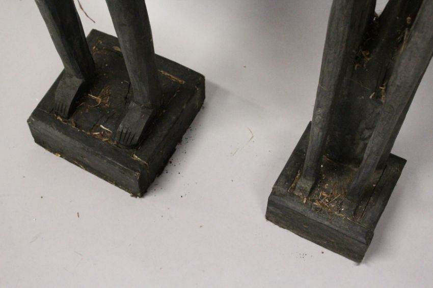 A PAIR OF VERY TALL CARVED WOOD ETHNIC FIGURES.