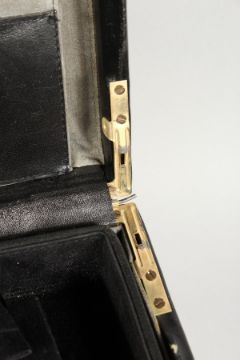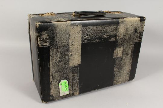 A MODERN BLACK LEATHERETTE BRIEFCASE with fitted interior.