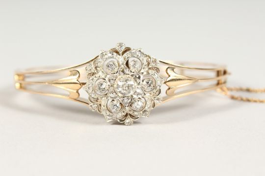 A GOOD GOLD AND DIAMOND SET CLUSTER BRACELET