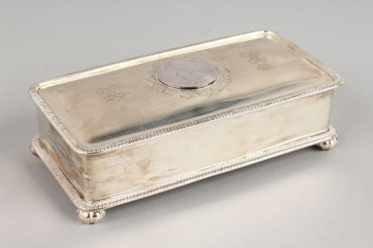 A CARRINGTON & CO RECTANGULAR SILVER CIGARETTE BOX with inset Edward VII coin Delhi Durbar 1903 - London 1902.