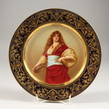 A GOOD VIENNA PORCELAIN PLATE, superb quality, painted with Tochter Kalifen.