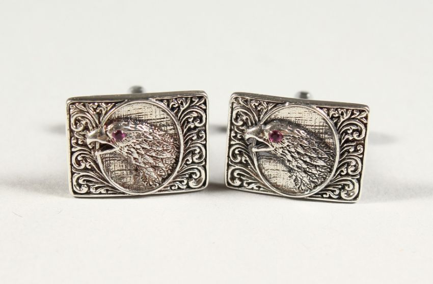 A PAIR OF SILVER AMERICAN EAGLE CUFFLINKS.