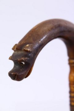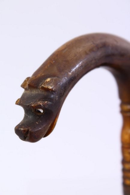 A GOOD 19TH CENTURY CHINESE CARVED RHINO HORN DOG WALKING STICK HANDLE, the handle carved to depict a dogs head, 10cm x 9cm, fitting a cane no larger than 0.7cm.